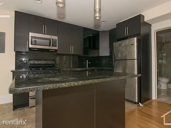 Bright, Spacious, Student Friendly, Pet Negotiable, 4BR/3BA duplex in Brookline! This apartment features hardwood floors throughout, high ceilings, an open floor plan and lots of natural light, four large, equal bedrooms with ample closet space, central A/C, exposed brick, living room, modern, fully applianced kitchen with granite, stainless, kitchen island with pendant lighting, microwave, dishwasher and disposal, three modern baths, front and back balconies, and laundry on site! (RLNE8165985)